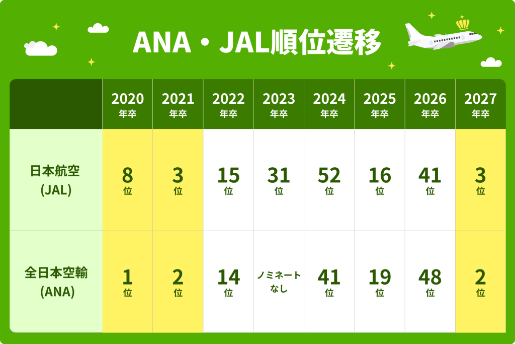 2027年卒の学生は2023年4月に入学しており、新型コロナウイルスによる大学活動の制限を大きく受けていない世代です。そのため、今後はコロナ禍以前と同様に、航空業界が再び高い人気を集めていくことが予想されます。