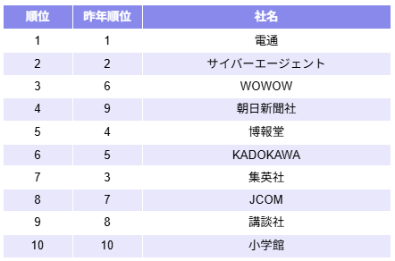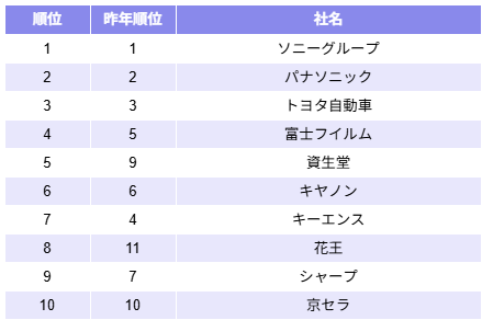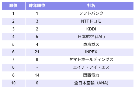 テクノロジーカンパニーとしての側面を強く持つソフトバンクが首位を堅持しました。