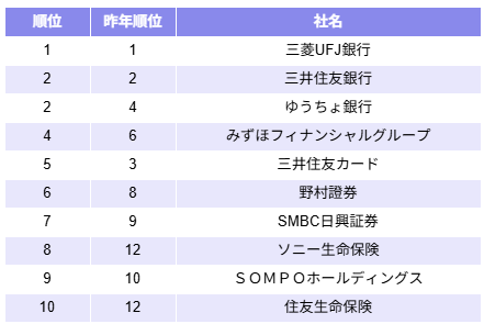 三菱UFJ銀行が2年連続で首位を獲得しました。
