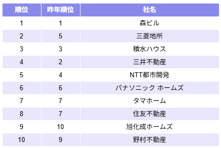都市開発とデジタルの融合を進める森ビルが首位を堅持しました。