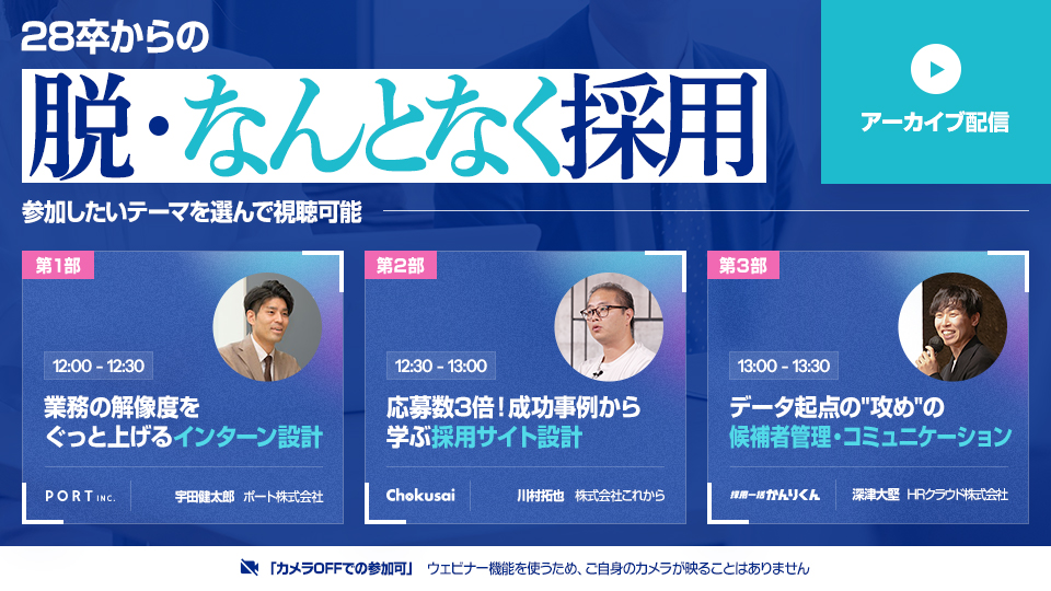 【録画配信】今から考える、28卒優秀層の「見つけ方」「出会い方」「口説き方」 ~学生アンケートから紐解く、インターン設計とスカウト活用~