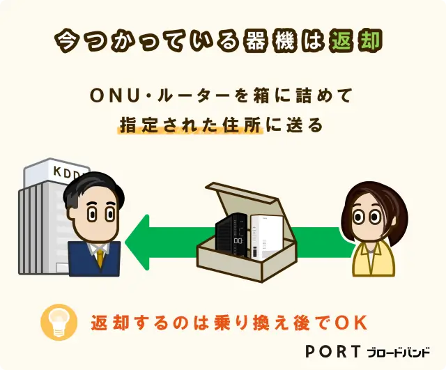 解約後に忘れてはならないのが、元の回線から借りていたルーターやモデムといったレンタル機器の返却です。