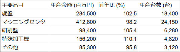 マシニングセンタ(412,800)と特殊加工機(156,200)の生産金額を合計すると、569,000(百万円)となる。