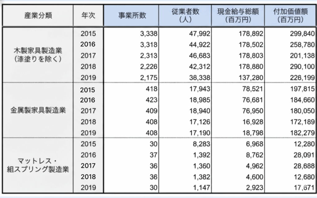 2019年における木製家具製造業(漆塗りを除く)の従業員一人あたりの現金給与額は、およそいくらか。最も近いものを、以下の選択肢の中から一つ選びなさい。