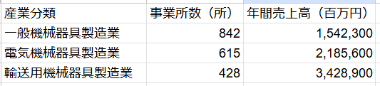 輸送用機械器具製造業と電気機械器具製造業の年間売上高の差額は、およそ何億円か。最も近いものを、以下の選択肢の中から一つ選びなさい。