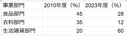 2023年度のG社の売上高全体をXとおくと、食品部門と衣料部門の売上高の合計はどのように表されるか。正しいものを以下の選択肢の中から一つ選びなさい。