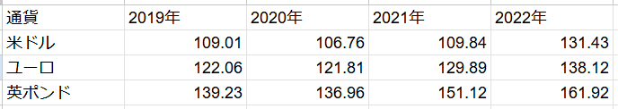 各選択肢を検討する。Aは2023年のデータがないため判断不可。Bは(109.84÷106.76-1)×100≒2.88%となり、約2.9%上昇しているため正しい。Cは139.23÷122.06≒1.14倍であり誤り。Dは輸入額のデータがないため判断不可。Eの上昇率は米ドルが約19.7%、ユーロが約6.3%、英ポンドが約7.1%となり、米ドルが最も高いため誤りである。