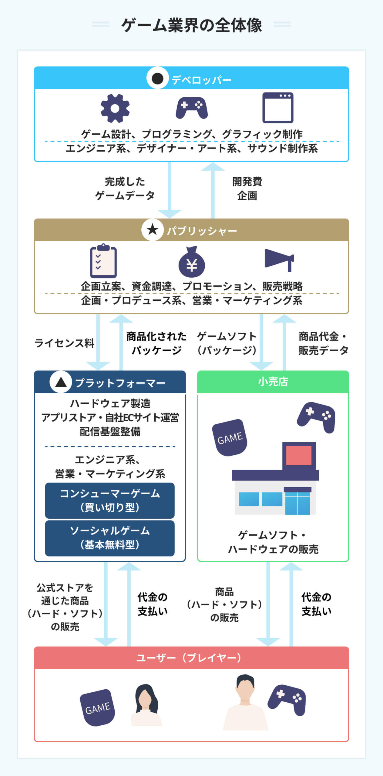 上記はゲーム業界の構造を図解化したものになります。